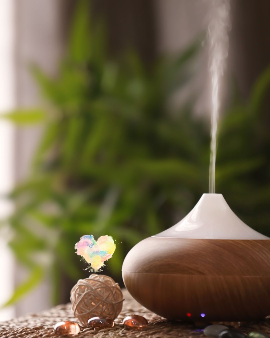 部屋をランプとアロマディフューザーの灯りだけにして、
